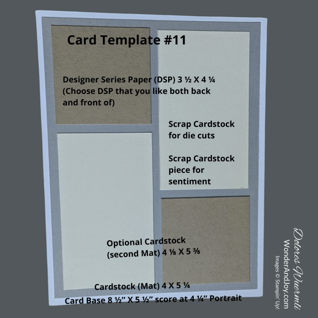 This card template #11 can be used either portrait or landscape. I made all the samples in portrait. Do what you would like with your supplies and consider what sentiments you want to share with the recipient of the cards. This may determine which works best, portrait or landscape. I had lots of fun selecting my stamp supplies and I am so thrilled with how each card turned out. They filled me with joy!
